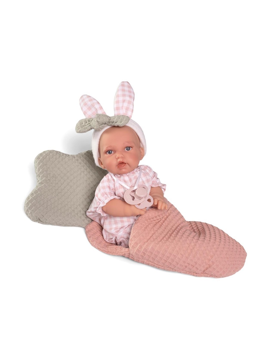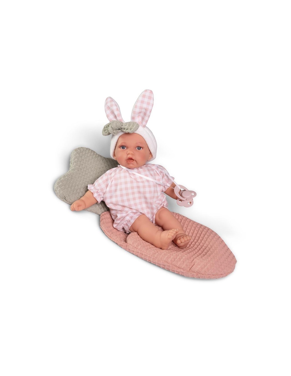 Petit, tu primera muñeca. Esta adorable muñeca de cuerpo blandito de 27 cm está llena de ternura y diversión. Es la compañera de juego perfecta para los más peques de más de 2 años. Con su gorrito de orejitas de conejito y su saquito de zanahoria, siempre estará calentita y lista para acurrucarse.