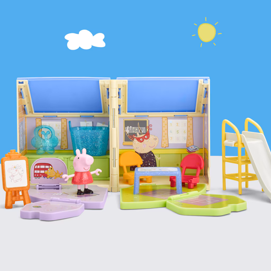 ¡Renueva tus espacios de juegos más creativos y geniales! ¡Al hacerte con el nuevo set Peppa Pig La Guardería Portátil de Peppa de Hasbro!
