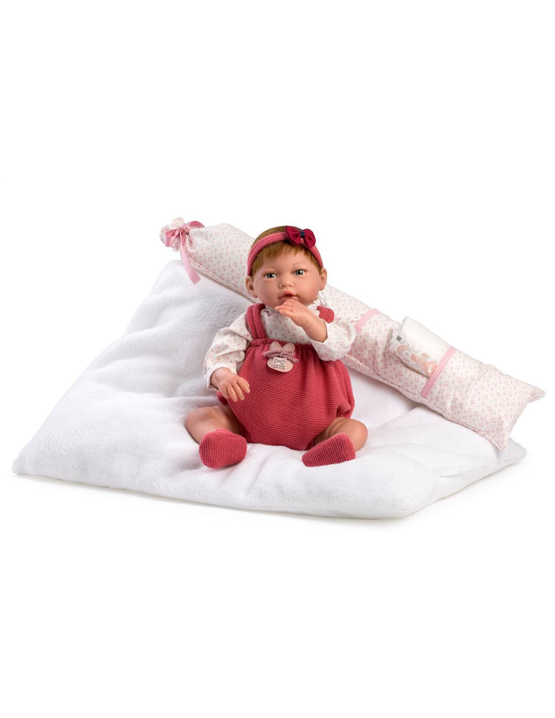 Roma es una reborn de 38 cm con pelo natural pegado, que transmite dulzura y delicadeza en cada detalle. Su rostro pintado a mano, su efecto cabeza caída y su cuerpo con peso de 1,9 kg crean una sensación muy real al tenerla en brazos.