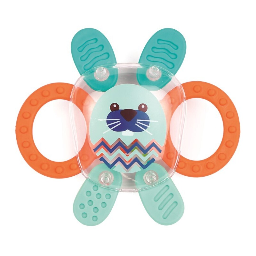 Sus colores vivos y su cuerpo transparente llaman la atención de los más pequeños. Sorpresa ! Una multitud de pequeñas bolas de colores cobran vida al manipularlo. El sonajero «conejo» anima al bebé a seguirlo con la mirada cuando lo sacude y así desarrolla su campo de visión. También despierta su agudeza auditiva al escuchar las pequeñas bolas que rebotan en forma de estrella con cada sacudida.