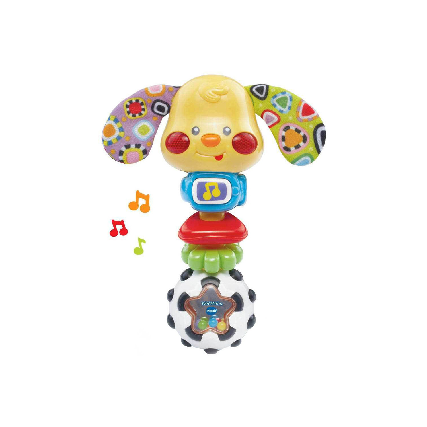 ¡Divertido perrito con voz, luz y música! Agita y mueve este simpático animalito y canta con él para una mayor diversión. Además podrás ver cómo las mejillas del personaje se encienden para animar aún más el juego. Agita el sonajero para escuchar entretenidos sonidos y música o pulsa el botón central para activar canciones, frases, sonidos y música. El botón central activa también canciones, frases, sonidos y música. Incluye más de 20 canciones, melodías sonidos y frases.